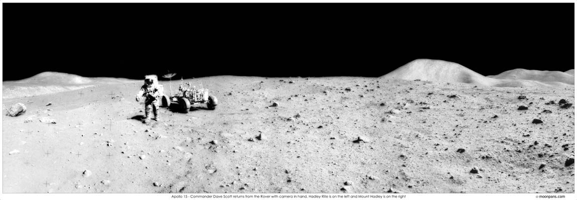 Shows Dave Scott returing from the Lunar Rover with the 500mm lens
