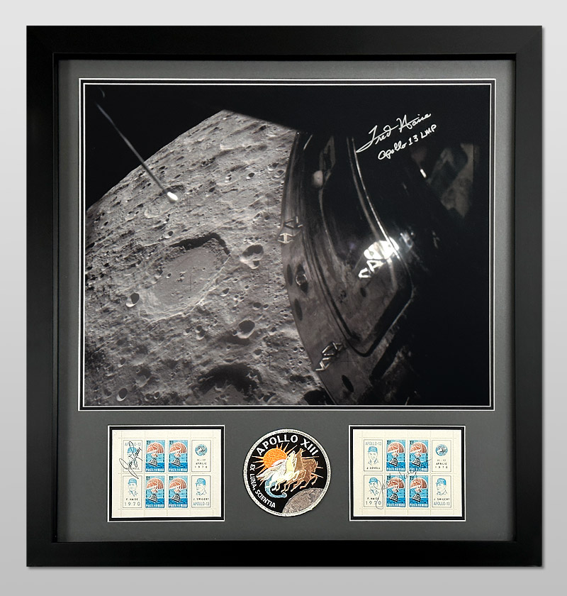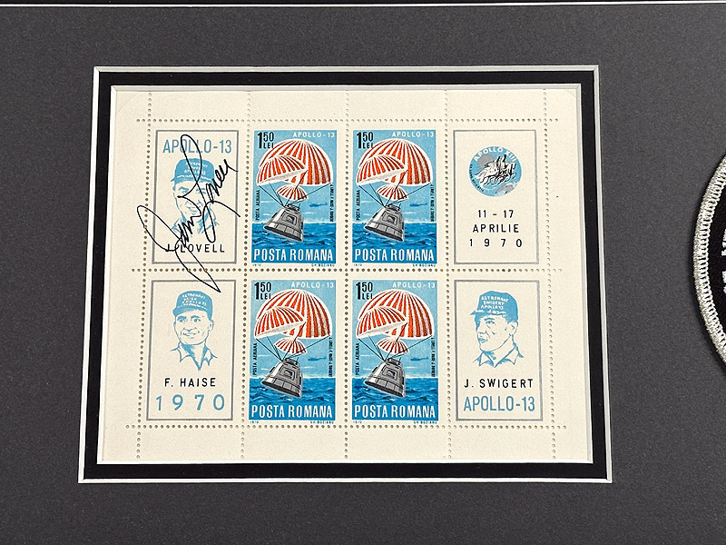 Framed using archival materials along with an Apollo 13 AB emblem patch.
